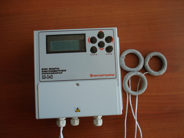 БЗ-043 – диапазон контролируемого тока 0-200А и 100-900А. Функции: предпусковой контроль изоляции, защита по току, напряжению, защита от всех неполно-фазных режимов, модуль вывода аналоговых сигналов в формате 4-20мА; USB – порт; счетчик моточасов, календарь и часы реального времени. Возможность перепрограммирования блока дистанционно, через USB-порт. В состав блока защиты введен модуль вывода данных о фактической (средней) токовой нагрузке электродвигателя в формате 4-20мА на панель оператора АРМ Дельта-V. Введен журнал текущих событий с обязательным указанием самого события, реальных даты и времени. Инструкция по эксплуатации на сайте предприятия.