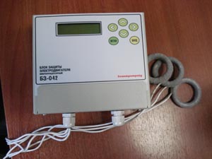 | Блоки защиты трехфазных асинхронных электродвигателей БЗ-042. Диапазон рабочего тока: 0-200А и 100-900А. Полная гальваническая развязка. Предпусковой контроль изоляции. Защита от всех неполно-фазных режимов: отключение двигателя при перегрузках по току, напряжению; при пуске, в процессе работы; при потере нагрузки; при перекосе фаз по току, напряжению; при обрыве, пропаданию любой из фаз; при блокировке двигателя между пусками; снижении пит.сети по току, напряжению; контроль количества срабатываний по обрывам фаз, перегрузкам; при коротком замыкании(функция МТЗ-максимальная токовая защита). Особенность-электромеханическое реле 16А (220В переменного тока) блок сохраняет работоспособность (удерживает реле при падении напряжения до 50% от номинала)(протокол испытаний №1163 от 2007г.на помехоустойчивость, помехозащищенность), фильтр питания держит броски напряжения до 470В. Корпус металл-механическая прочность, защита от внешних электромагнитных воздействий, спец.точка заземления. 2-х строчный ЖКИ-монитор (отображение рабочего режима БЗ на русском языке), простота программирования, обслуживания. Инструкция по эксплуатации на сайте предприятия |